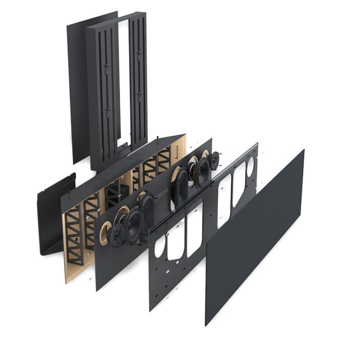 Canvas ist wie ein echter High-End-HiFi-Lautsprecher konzipiert und konstruiert und verfügt über ein High-End-Gehäuse aus Aluminiumdruckguss von SB Acoustics, Bass-/Mitteltöner der nächsten Generation mit Papiermembran, hochpräzise passive Langhubradiatoren mit steifer Papiermembran und von SB-CANVAS entwickelte Wellenleiter-Hochtöner aus Aluminiumdruckguss mit Seidenkalotte, die in die Frontgitter integriert sind und so ein Design ohne Beugung ermöglichen. Das Gehäuse ist grundsolide, aus satinschwarz lackiertem MDF gefertigt und verfügt über ein umfangreiches, von CANVAS entwickeltes BridgeBrace(tm)-Strukturverstrebungssystem (Patent angemeldet). Es verfügt über einen 4-Kanal-DAC und HiFi-Verstärker von Burr-Brown sowie fortschrittliche linearphasige DSP-Frequenzen von Analog Devices.